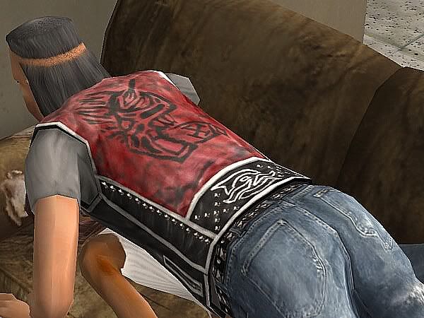 ‘I know why you’re here, pretty!’ he said, giving the girl a perverted grin ‘You just wanna be f***ed!’ he sat down on the couch too, coming closer to her, rubbing his sweaty body against hers.