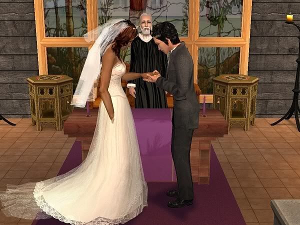 Everything seemed to happen in slow motion, all the sounds died away as she approached a grinning Sebastien in front of the altar.