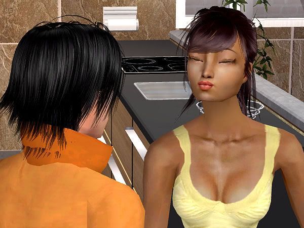 Shadee grinned widely. He actually cared! They would finally go back to the way they used to be! She giggled happily and craned her neck to give him a light kiss on the lips.
