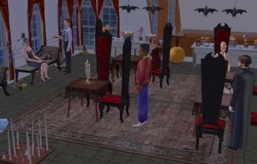 The whole house was decorated for Halloween, the dining room and guest lounge holding dance floors and private bar, the conservatory held the buffets with tables, music and Halloween decorations galore.