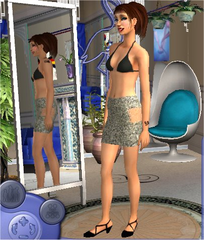 They also have tattoos on every skirt. You sim will have a tattoo on the top of the right arm and 1 on the wrist of the left arm. They are not proper tattoos, they are Wingdings 2 font symbols, but if you don't like them, put a long sleeved top on the sim to cover them up.
