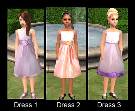 Make sure to download KiaraRawks' Ballgown Mesh (you'll need this for these dresses to show up in game)