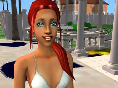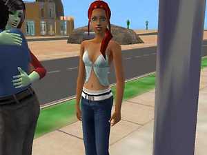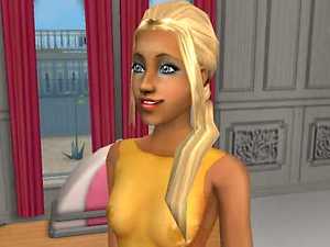 This is Phoebe. She's a born-in-game-sim and I love to play with her. She is very popular in her Neighbourhood and every boy wants to have a date with Phoebe. Her parents are an alien (Gabi Single) and the son of the army General (Theo Grunz). I don't know how both named in the english version.