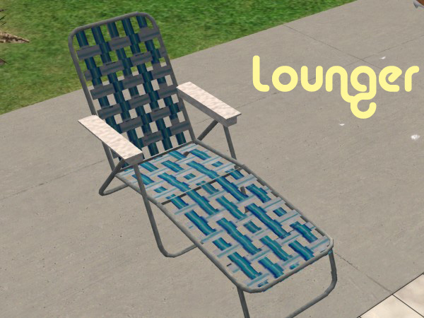 Tired of non matching, ugly, well, just not very pretty furniture on your patio? Well consider it a prob no more. Introducing the SimSwank Outdoor Set. Each piece has a durable aluminum frame and stain-proof strong nylon webbing for your sim's "Gluteus Maximus". Your sims will be lookin' posh sittin on that back patio this summer, while all of your neighbors cringe in jealousy.