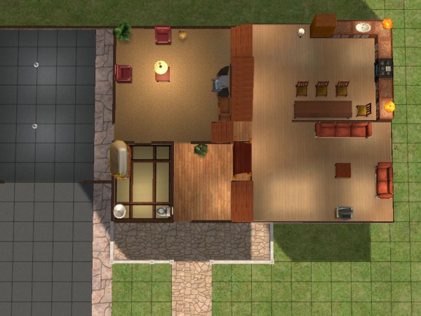and garden :P. It is built on 3x2 lot, costs 72 370 simoleans it has 3 bedrooms (1 master bedroom), 2 bathrooms (on ground and upper floor), garage of course I hope you enjoy it :D