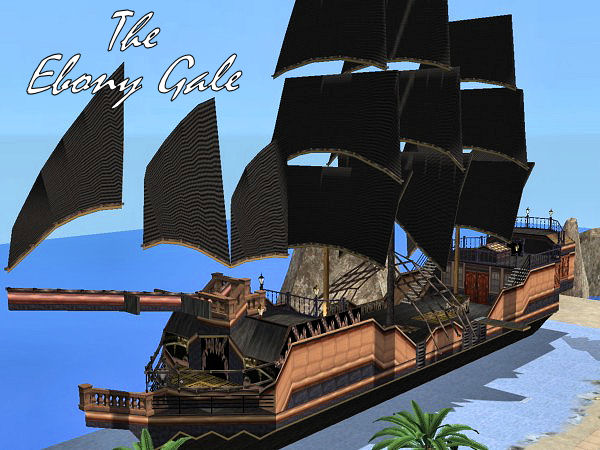 The ship includes the bowsprit, jib-boom, masts, stays and rigging, sails, curved hull, and of course, the “plank.” Sims disembark the ship via stepping off of the plank, and yes, while it may be odd to watch them walk on water, I had wanted to leave the ship without a connecting pier. (The sims also board the ship via the plank and the hull depth is playable.)
