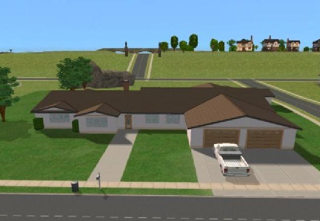 staircase. 2 car garage and cement backyard. Left mostly empty to use your imagination to do the rest for your Sim needs.This is also a Great start out home for couple or growing Sim family.
