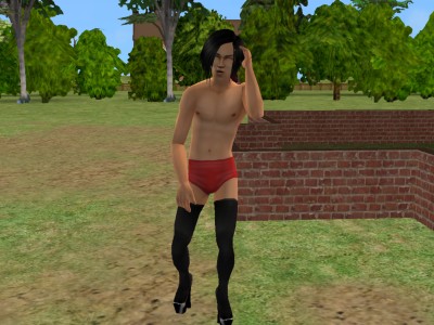 It is an outfit for Adult and Young Adult Male (you can find it under clothing). It is not a default mesh. The platform shoes are based upon Aardvarkams and Artemisha's wonderful mesh. I highly recommend checking out their wicked work at http://artemistha.moonfruit.com/.