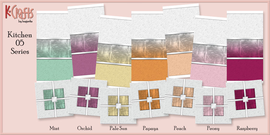 This is KCrafts Kitchen 05 Series with 28 colors. Each includes a wallpaper and linoleum floor. Each will be 7 Simoleons.