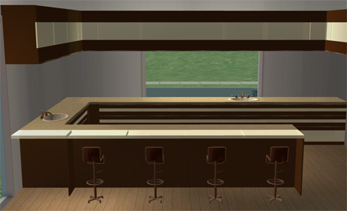 (2)The set includes recolours of: Counter, Espresso-maker, fridge, counter-island link, island, island stool, microwave, smoke alarm, tall counter - microwave hutch, tall cupboard, wall cabinet corner, wall cabinet.