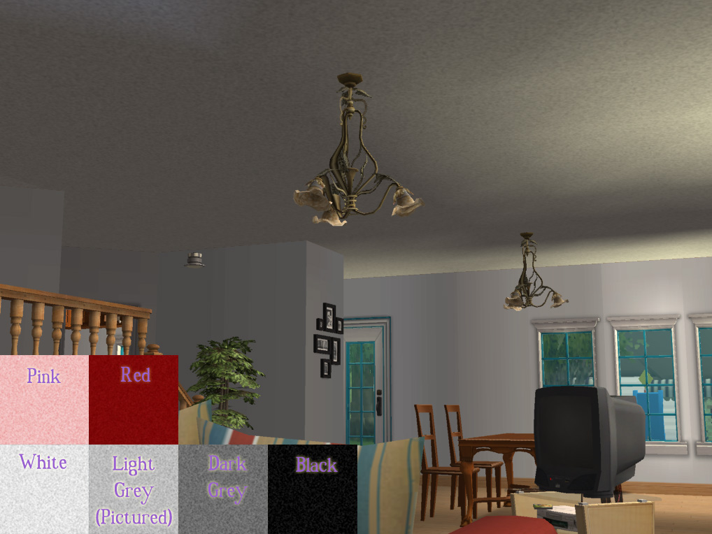 Due to the difficulty in taking screenshots for these (having to exit to neighborhood and re-place every tile to change colours) I've only included a screenshot of the light-grey, with the textures attached. Use your imagination.