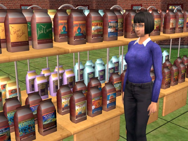 I have all EPs up to Pets, and they were installed when I created the recolors. Bags are sellable but decorative only. When the bags are restocked, the front of the bag will display showing the contents via the little oval cellophane window (coffee in the coffee bags; tea in the tea bags). In order to avoid this and keep the labels displaying properly, I simply do not place the front row of bags for sale.