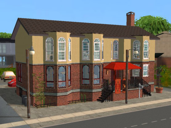 For sims that are sick of living in the suburbs, Backdoor Lane provides an alternative: a couple of small town lots with a more urban look and feel. They fit together like a jigsaw puzzle, creating a maze of backyard gardens and interconnected alleyways when placed in a tightly spaced neigbourhood. Most of them work as corner lots as well as facing the street, creating a very different impression depending on how you place them and what's on the lot next door.