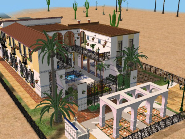This is an unfurnished version, except baths and kitchen with only maxis items, so feel free (naturally) for deco as your own temptations. I suggest few objects and traditional furniture, ‘cause the outdoors are the star in this house. I use to include in there a lot of plants and garden custom content, but to upload here it would be oversized and … the bandwith is not only mine!