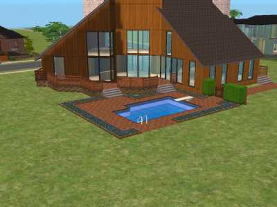 This is a large cabin style house with 3 bedrooms and 2 bathrooms, parking for two cars and a swimming pool.