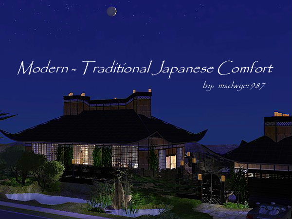 Japanese style single story home on a unfurnished 4 x 3 lot. Constructed for maximum game performance with unique 1/2 walls vs: windows & open archways vs: doors, to enjoy the large pond & pool with minimum game stress. Plan includes a living room, kitchen, 1 bedroom, 1 bath, family room & designed a large deck to include a outdoor dining room, outdoor living, as well as access to pool, garage & entrance. 1 car garage with a outside room addition for possible workout area. Minimum CC used as well as plant contact for you to use at your own discretion. My CC included: fence & gate recolors,(Special Thanks to: Holy Simoly for allowing me to share recolors of Pleiadian fence + tall in black), walls, flooring & terrain paints. I included a separate download file for the interior bamboo wall texture I used in picks if your interested. Lot placement on a level terrain is suggested for best effects & minimum loss of terrain paint colors.