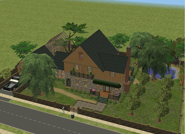 This is a house I built that reminds me of my childhood in the Texas hillcountry. A quiet country setting where your Sims can tend the garden while the kids chase fireflies, fish and play catch in the evenings. It is fully furnished and decorated and features 3 bedrooms and 2 bathrooms.