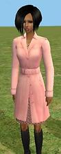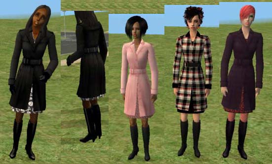 The last one there is a purplish colored coat with a cherry dress underneath and red fishnets.