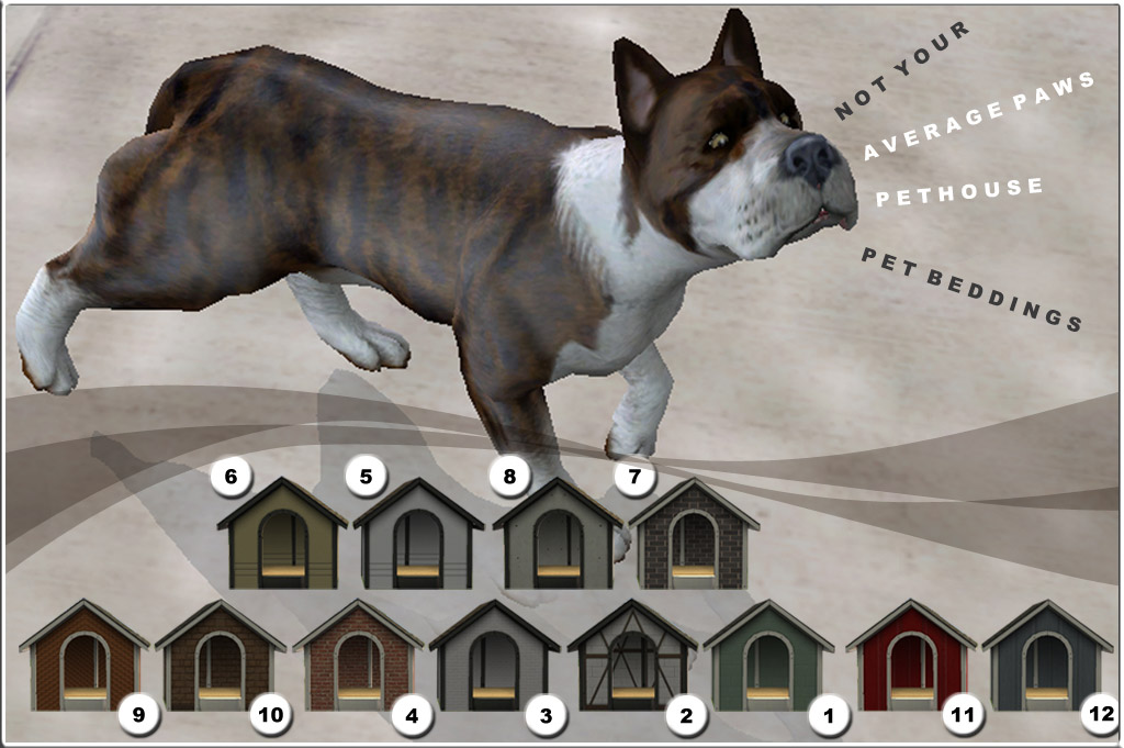 This is the second batch of the Maxis Matching Walls and the Average Paws Bedding Pet House re-texture.