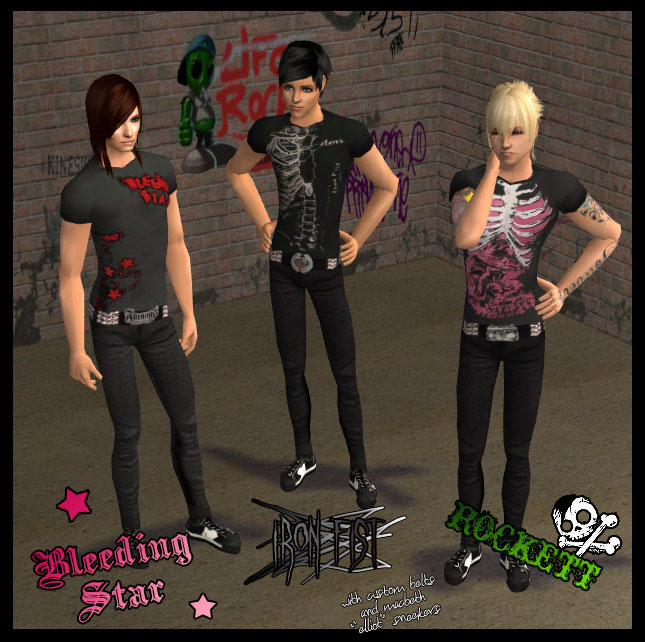 included are 3 files, all with black/grey skinny jeans and Macbeth 'Elliot' shoes. The t-shirts are from bleeding star , Iron Fist and Rockett clothing. Also the belts are FSAS, Silver Star and Lowlife.