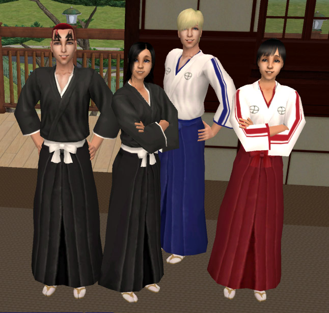 So, I spent the greater half of September learning how to mesh and these are the fruits of my labor, the Shinigami basic uniform and the male and female Shinigami school uniform. Both sets are for Child-Elder and appear under Everyday and Athletic.