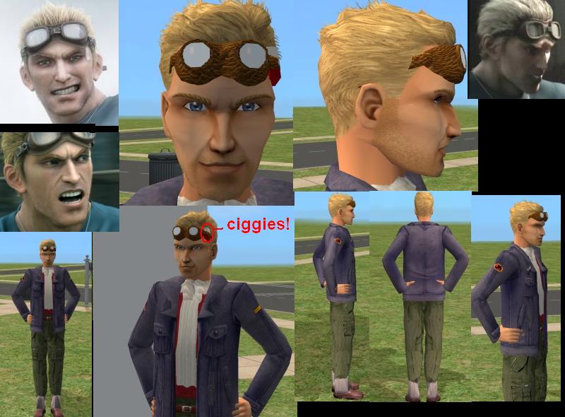 The google mesh (notice the cigerrate pack on the right side ^^) only comes off with formal and swim wear - I can envisage Cid wearing those goggles as much as possible! The googles have 568 polys and 459 verticies. The only strange discrepency with the mesh/recolour is that you can't export the textures in body shop.