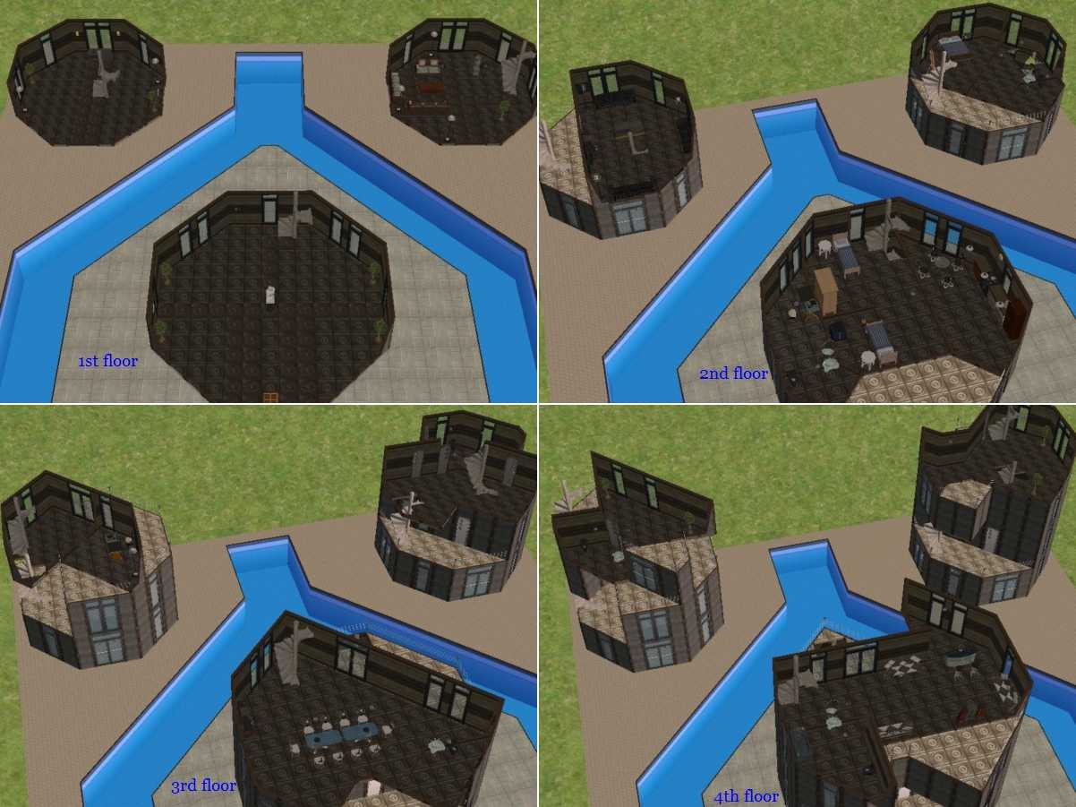 This lot was the most complicated I have ever made. The edgie structure, the accessibility issues, not to mention its size. And on top of it all, I had a huuuuge problem when I finished it: the game crashed while I was saving the lot! I had to redo the whole interior, looking at the videos & screenshots... It took me like 5 hours, finding the lot's bug and rebuilding almost the entire structure's details!