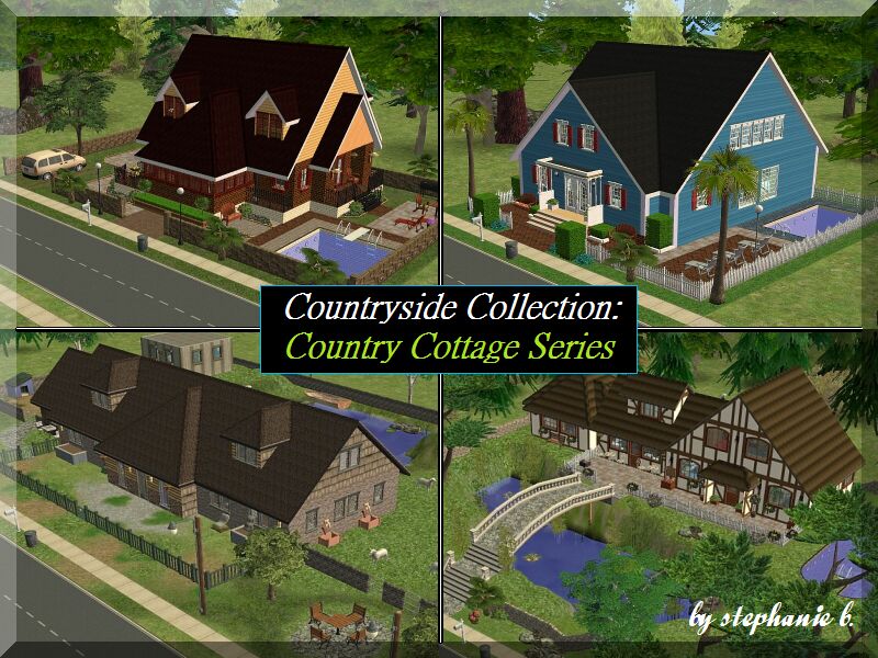The Countryside Collection includes 4 sets of country styled lots. Each set has 4 houses in it. The houses vary in lot size and design. The Cottage Series includes 4 country cottage homes: The Landale, The Rocheford, The Donegal and The Shropshire. I drew inspiration from America, as well as Great Britain and Ireland to complete this set. This download includes 4 lots. The Donegal (an Irish Sheep Farm inspired by the kid's television show "Jakers") lot contains many small decorative items and rebecah's animated sheep (which accounts for this lot being the largest download). All lots have a few build items included.
