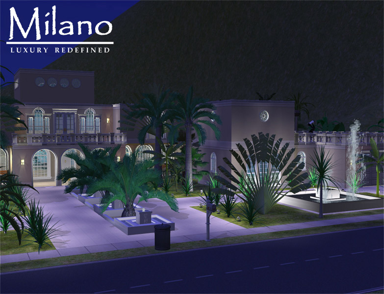 WARNING: This house is HUGE! It contains a lot of graphics-intensive items, embedded objects, special lighting effects, advanced building techniques, etc. Be advised that it may make your computer run slowly (or even crash your game if your computer can't handle it.) Be careful when trying this house for the first time, and I would suggest turning your graphics options down to the minimum until you know how this house will run. You can reduce some of the landscaping and mirrors, which will help improve your computer's perfomance if you are having trouble.