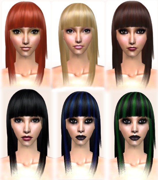 This is my first upload :D I made 6 recolors of xmhair 61 Red and Yellow, Black purple and more...
