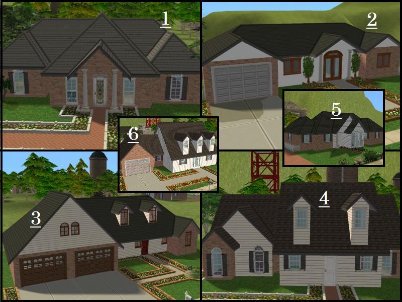 All of these houses are in fact starter houses as well and vary in price from around $16,000 to $19,000. They are all on 2x4 lots and have fully functioning driveways, i thought i should point that out as i usally have driveways which are irrusable in other lots but these work FULLY! Just a last point, like all of my downloads they contain absoloutely NO custom content, all there is left to say is enjoy!