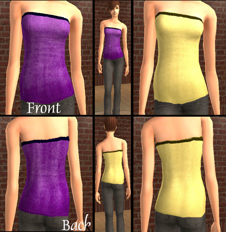 The Curiously Simple Tube tops are basically alpha edits of Migamoo's untuckable tank tops. Except, with a little less recolors.