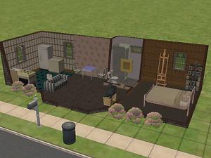 The Back2Basics Double home is large enough for a couple of adult Sims. There are three rooms, including a bathroom and a bedroom.