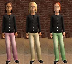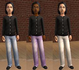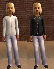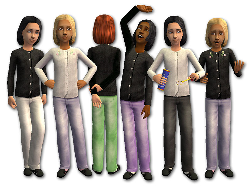 Here are some cardigan sweater outfits for your Sim girls. I thought they should have some sweaters. Their brothers have some, after all. There are seven plain styles to choose from, plus two embroidered sweaters.