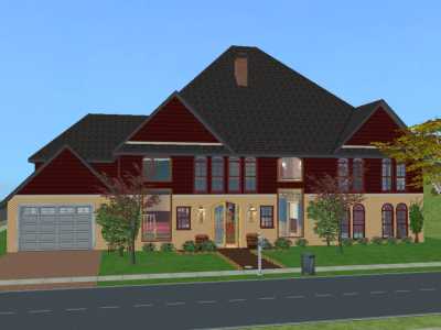 It is very spacious two story home with a garage. The living room is like a stage with railing and the second story's hallway is like a loft. It comes with two fireplaces, one in the dining room and one in the living room. I also made and office/study that can easily be made into another bedroom for your Sims with large families.