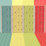 4 recolors of Uni gym locker (Fusty Hors D'oeuvres Gym Lockers) in 4 Atomic colors (Aqua, Lemon, Lime and Pink) + 2 recolors in white and grey.