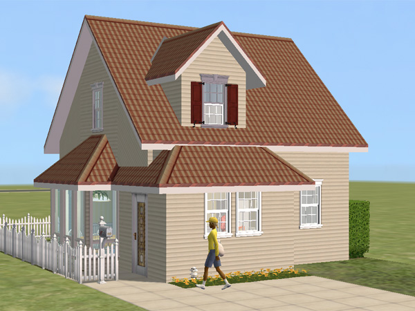 Mini starter, furnished for 1-2 sims, with fenced-in garden and room for a driveway in front. There is one small spare room that can be used as a nursery (for that I'd suggest you move the door so that it has direct access to the kitchen), or as an extra bedroom or study.