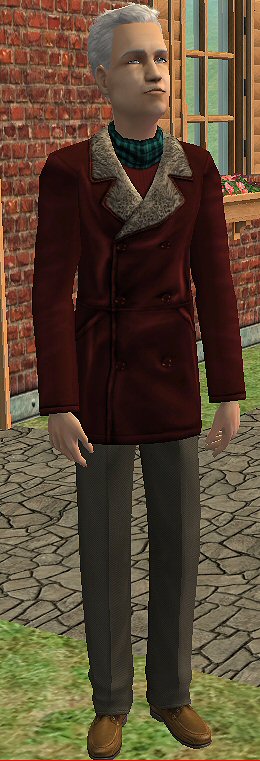 I wanted a peacoat for elder male and a recolor that made the adult male leatherpeacoat available for Elder men did looks ok, but as a variation I made a peacoatmesh especially for them with pants from an elder male mesh and adjusted the back and chest. I made 9 textures all categorized as coats, so you need Seasons. The mesh has a fatmorph and an UVmap.