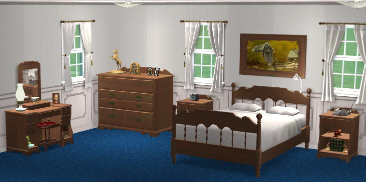 I've been unable to find a similar set for The Sims 2, so I've spent the past three months creating a full bedroom set based on my beloved furniture.