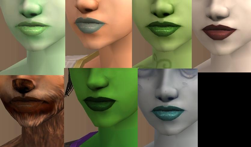 These are recolors of my Roseus lipsticks. These lipsticks are appropriate for your creature sims.