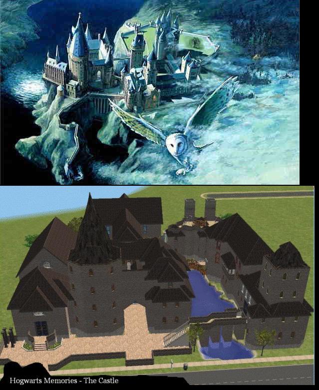 The castle includes: entrance hall, courtyard, great hall, moving staircase, all four common rooms with girl/boy dormitories, very large basement, kitchens, library, transfigurations, potions, charms, muggle studies, divinations, astronomy tower, perfect bathroom, moaning myrtle bathroom, clock tower, Dumbledore's office, chamber of secrets, trophy room.....