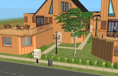 Here are some lovely apartments for your smaller families. Even though they are for smaller families, I didn't want to skimp on space, so I made them nice and spacious. They are moderatley furnished. There are 3 units total, and each unit features a walk out balcony porch on the second story. Each unit has two bathrooms. They are decorated inside and out. I hope you all enjoy these very much.