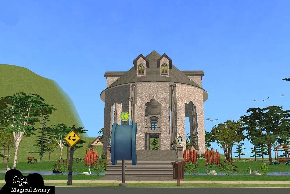Lot is large and it's community. Dinning area, chess and toilet are in the basement, and you get there with invisible teleporter. I made this lot because birds are my favourite animals. Lot requires: all eps, no sps and some cc