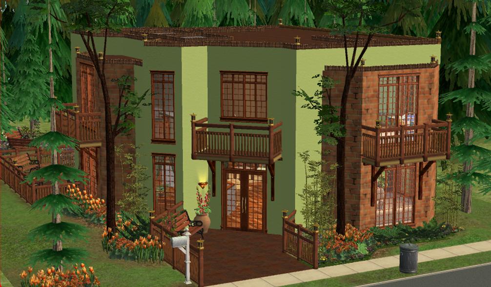 Nestled in a clearing deep in a forest, this house come equipped with everything a sim needs to lead a happy life. I has 2 bathroom, 2 bedrooms, and an open floor plan that facilitates movement through the house. There is a pond and extensive landscaping.