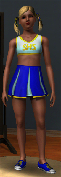 This is a change to the existing cheerleader outfit where I changed the top to a cute crop top and added the optional SHS logo on the front.