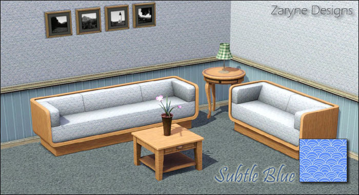 A subtle blue (hence the name) pattern that is unobtrusive yet elegant in any Sim home.