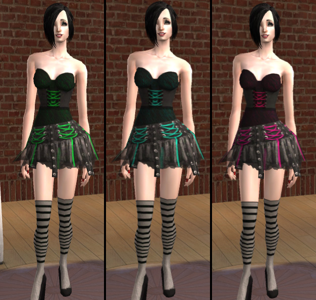 This is a goth outfit handpainted by me =D It's in six different colors. I used an awesome mesh by Grizzelda, that is included in every file.