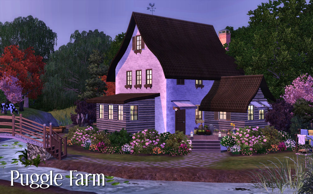 Inspired by a new (local) Aussie tv show called "Gourmet Farmer", Puggle Farm is a small-sized, 3 storey farm house with 2 bedrooms, 2.5 bathrooms, storage shed/nectar making facility, fully stocked fishing creek, combined kitchen and dining, cozy lounge area with fireplace, fruit orchard, vegetable plot, bbq and bench and cottage garden landscaping. Also has skill building painting easel and chess board. There is room at the front for a car space. All of this for under 80,000 simoleons! :D
