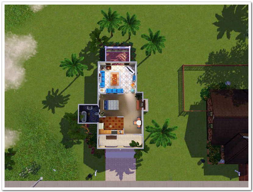 Here I am with this colorful mediterranean style house, copied the idea of the decoration of my new apartment It's small but bright and cozy, has a fireplace that can warm ur sims up in winter. Major color is orange and blue, as for sunlight and ocean breeze. Nothing too special, no splitting level, no folded stairs and no cc(*sigh*I'm lazy lol). I just really put a lot of thoughts into the interior decoration with what I have in the original game and I'm luving it, so hope u guys like it too!
