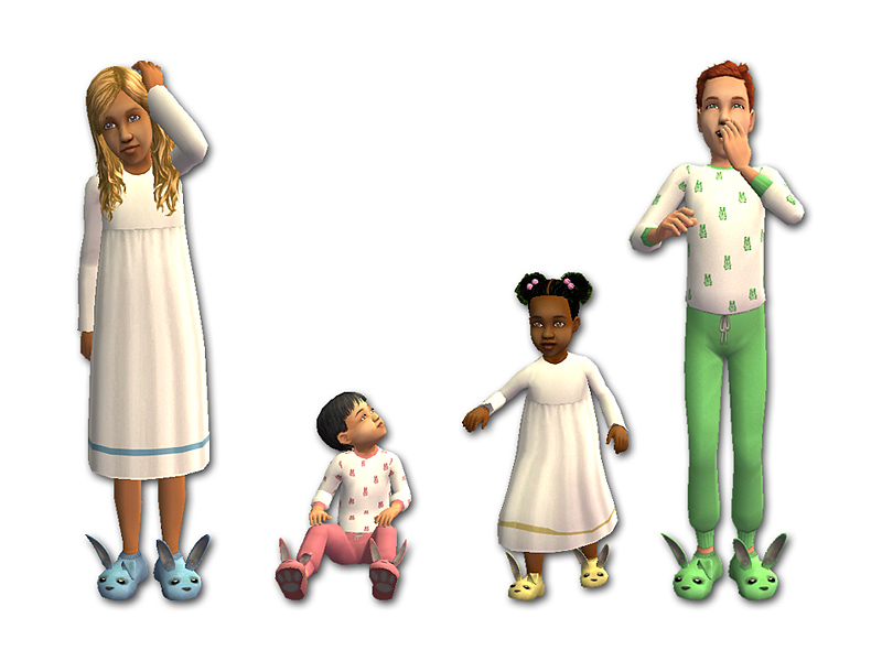 My Sims also didn't have many nighties. My toddler girls didn't have any at all! So, in an attempt to fill in the gaps in my Sims' wardrobes, I made these four new meshes: